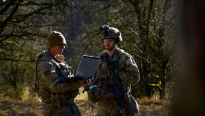 U.S. Army Soldiers assigned to the 3rd Brigade, 10th Mountain Division operate a GhostX drone from a mobile laptop during Exercise Combined Resolve 25-1 at Hohenfels Training Area on Jan. 31, 2025. Combined Resolve is a US-led, NATO and partner-integrated exercise in the European Theater focused on combined arms interoperability. (U.S. Army photo by Staff Sgt. Bryanne Vega)