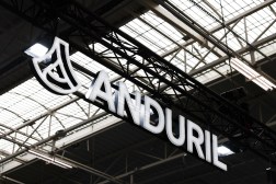 This photograph shows the Anduril logo on display during the 55th edition of the International Paris Air Show (Salon international de l’aeronautique et de l’espace – SIAE) at the Paris–Le Bourget Airport, in Le Bourget, north of Paris on June 19, 2025. (Photo by Thibaud MORITZ / AFP/ via Getty Images)