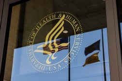The Health and Human Services seal on a door of the office building in downtown Washington DC on April 1, 2025. (Photo by Robb Hill for The Washington Post via Getty Images)